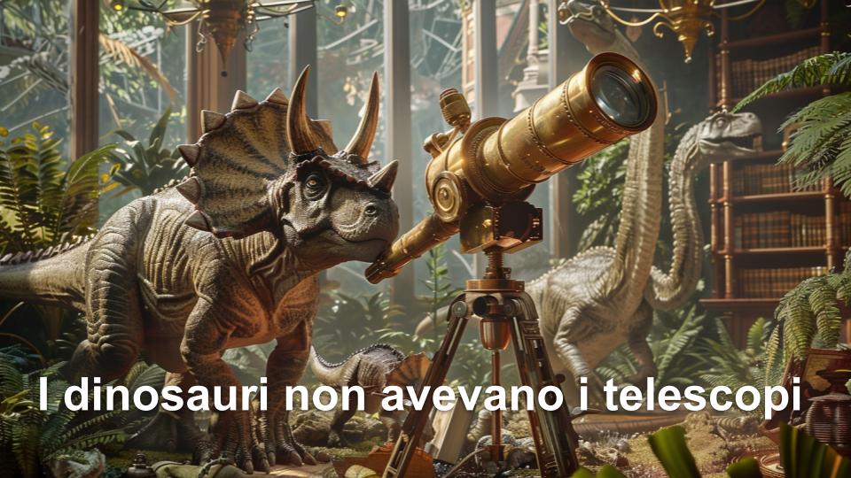 Pensate, i poveri dinosauri… Non avendo i telescopi non potevano vedere che stava arrivando l’asteroide che ha portato alla loro estinzione. Noi questi telescopi, sia concreti che metaforici, li abbiamo e quindi è bene che li utilizziamo.